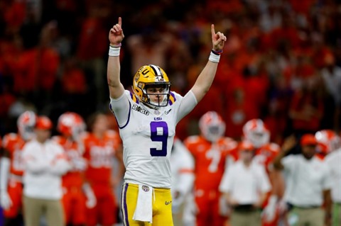 | Le nouveau quarterback de Cincinnati, Joe Burrow, sous le maillot de l'équipe de son université LSU le 13 janvier à La Nouvelle Orléans. |