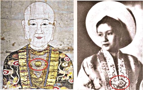 En observant une peinture (réalisée entre 1558 et 1786) représentant le maître zen Nguyên Minh Không (1073-1141) suspendue dans le temple de Thanh Nguyên (province de Ninh Binh, au Nord), et une photo de la reine Nam Phuong (1914-1963), prise le 21 mars 1934, le jour de son mariage, on voit également sur leurs costumes un bouton en forme de chrysanthème attaché au niveau de la poitrine.