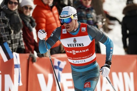| Le fondeur français Maurice Manificat lors du 15 km classique de Lahti en Finlande, le 4 mars. |