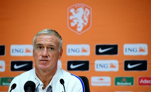 | Didier Deschamps face aux reporters à Amsterdam, le 9 octobre. |