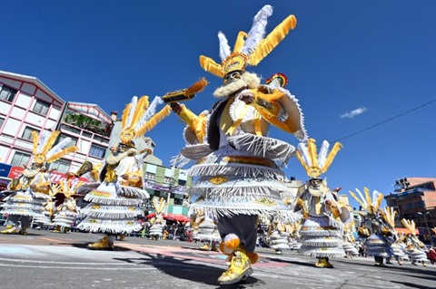 | Des Boliviens fêtent la Journée de la Paz et la Vierge du Carmen, le 16 juillet à El Alto. |