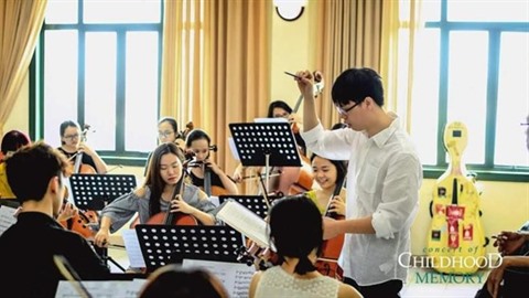 | "Concert of Childhood Memory" est un orchestre composé de jeunes musiciens de l’Académie nationale de musique du Vietnam. |