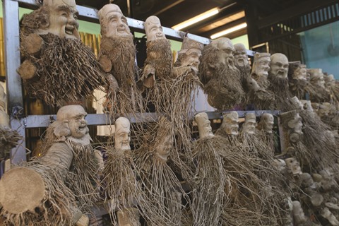 Emportant ces racines chez lui, l’artisan a décidé d’y tailler des têtes barbues. "Ces têtes sont drôles mais aussi très impressionnantes. En les contemplant, j’imagine des bouddhas ou des génies bien connus des Vietnamiens, qui arborent souvent un large sourire", confie-t-il.