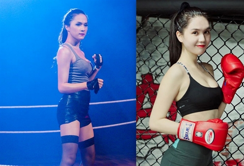 | Plusieurs de «hot girls», connues dans le milieu du show business vietnamien, ont décidé de se faire photographier en tenue de boxe. |