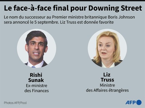 La campagne a été violente entre les deux conservateurs candidats à la succession de Boris Johnson démissionnaire : Mme Truss, 47 ans, ministre aguerrie et déterminée, positionnée très à droite, et Rishi Sunak, 42 ans, ancien ministre des Finances à l'expérience politique limitée, qui a joué la carte d'une honnêteté didactique parfois mal reçue.