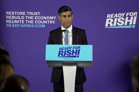 | L'ex-ministre des Finances, Rishi Sunak, prend la parole à Londres, le 12 juillet. |