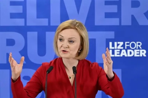 | La ministre britannique des Affaires étrangères Liz Truss lance sa campagne pour devenir Première ministre, le 14 juillet à Londres. |