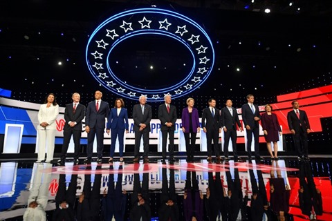 Complètent l'affiche les plus petits candidats qui tentent une percée : la sénatrice Kamala Harris, l'ancien élu de la Chambre Beto O'Rourke, le jeune homme d'affaire Andrew Yang, le sénateur Cory Booker, le milliardaire californien Tom Steyer, l'ancien ministre de Barack Obama Julian Castro et l'élue de la Chambre Tulsi Gabbard.