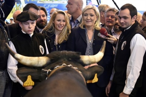 | La candidate du Front national Marine Le Pen (2e à droite) en visite au Salon de l'agriculture de Paris, le 1er mars. Photo : AFP/VNA/CVN |