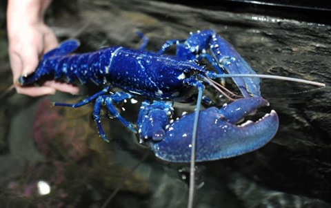 | Un très rare homard bleu péché en mer d'Iroise et confié au Parc de découverte des océans Océanopolis à Brest. |