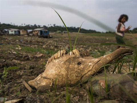 | Une carcasse d'animal dans le lit du Rio Negro, en Amazonie brésilienne. |