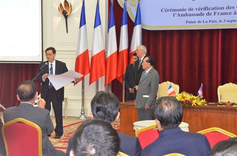 | Cérémonie de vérification des cartes remises par l'ambassade de France au Cambodge, le 3 septembre à Phnom Penh. |