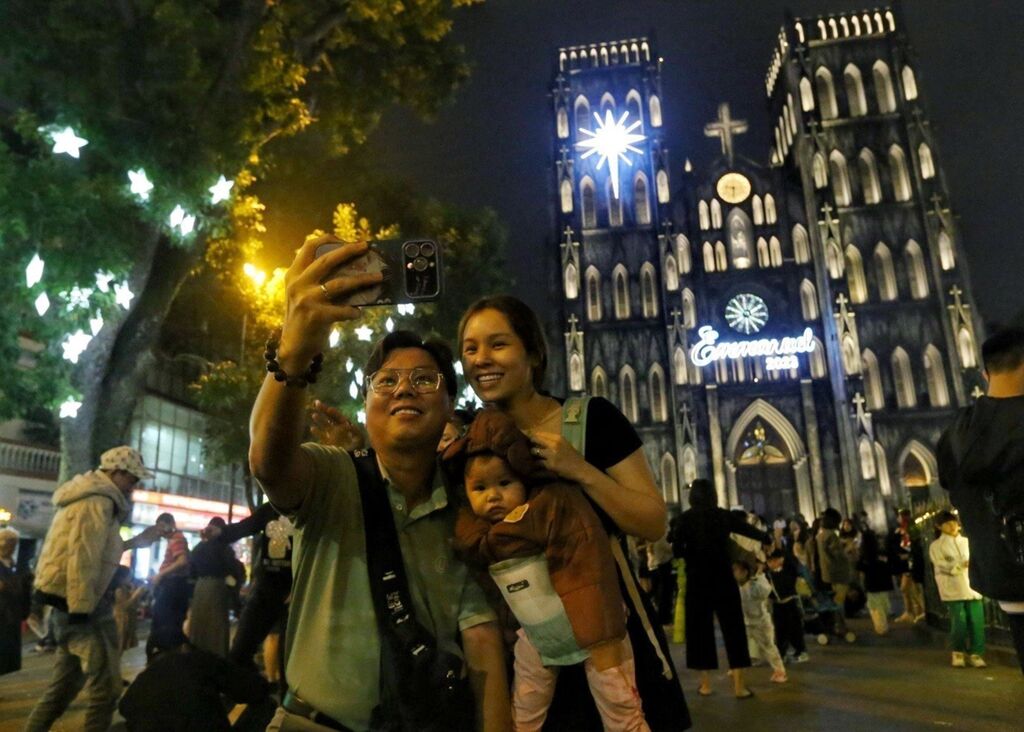 | L'ambiance de Noël à la Cathédrale de Hanoï. |