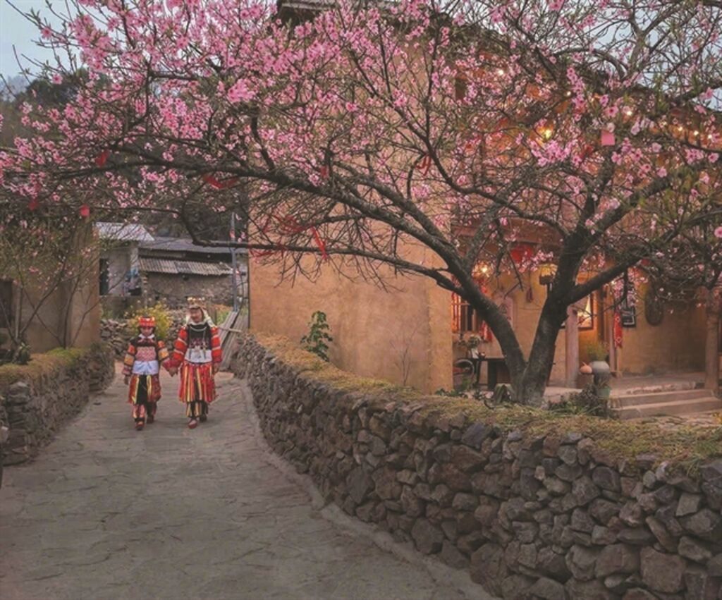 Actuellement, la floraison éclatante du mai anh dào - une variété de cerisier sauvage - cultivée dans les villages de Thèn Pa, San Trô et Ma Le, ainsi qu'au poste-frontière, transforme les chemins et les cours des maisons en un doux paysage rose. Elle crée un écrin de verdure et une ambiance onirique dans l'air brumeux des montagnes du Nord.