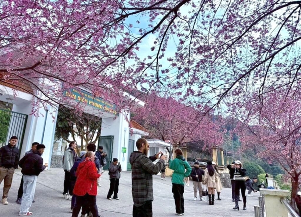 | Les cerisiers en fleurs s'imposent peu à peu comme un nouveau symbole touristique au poste-frontière de Lung Cu (province de Tuyên Quang, Nord). |