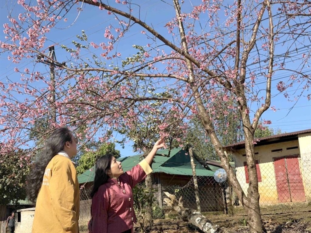 | On peut admirer des cerisiers en fleurs autour de presque chaque maison de la commune de Muong Lông, dans la province de Nghê An. |
