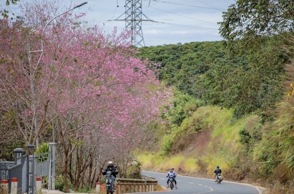 | Les cerisiers sont en pleine floraison sur de nombreuses routes en périphérie de Dà Lat. |