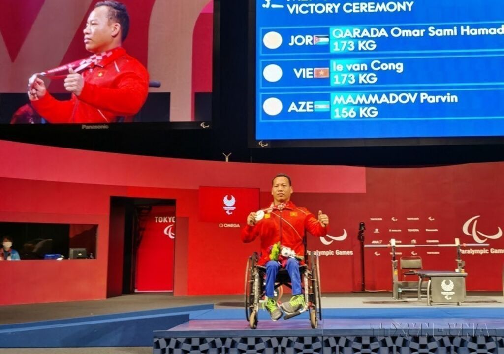 | Aux Jeux paralympiques de Tokyo 2020, le powerlifteur Lê Van Công a décroché l’argent dans la catégorie des moins de 49 kg. |