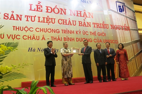| Cérémonie de réception du certificat de patrimoine documentaire du registre «Mémoire du monde» pour l’Asie-Pacifique de l’UNESCO destiné aux «châu ban», le 30 juillet à Hanoi. |