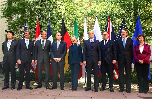 | Photo de famille des ministres des Affaires étrangères du G8, le 11 avril à Washington |