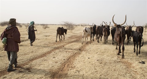 | Des bergers amènent leur bétail à un point d'eau au Niger. |