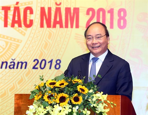 | Le Premier ministre Nguyên Xuân Phuc lors la conférence de déploiement des tâches de 2018 du Département général des statistiques, le 22 janvier à Hanoï. |