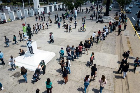 Malgré la pandémie de coronavirus qui a durement frappé le Chili (500.000 contaminations, 14.000 décès) de longues files d'attente d'électeurs, le visage masqué, se sont formées toute la journée devant les bureaux de vote de la capitale Santiago.