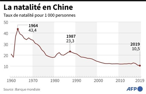 Cette politique doit s'accompagner de "mesures de soutien" aux familles, a ajouté l'agence de presse officielle sans plus de précisions. Début mai, les résultats du recensement réalisé en 2020 ont révélé un vieillissement plus rapide que prévu de la population chinoise. L'année dernière, marquée par l'épidémie de COVID, le nombre des naissances est tombé à 12 millions, contre 14,65 millions en 2019. Cette année-là, le taux de natalité (10,48 pour 1.000) était déjà au plus bas depuis la fondation de la Chine communiste en 1949.