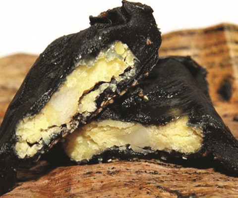 Parfois, les haricots mungo peuvent être remplacés par de la noix de coco moulue sucrée. Une fois les feuilles de bananier pliées en forme de cône, le cuisinier dépose la boule et la plie sur quatre côtés, créant un ainsi un gâteau de forme pyramidale. Enfin, le gâteau est cuit à la vapeur afin de lui donner une couleur noire profonde et brillante issue des feuilles de gai qui lui offrent également un goût sucré et un arôme délicat.