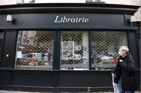 | Une librairie fermée à Paris, le 30 octobre 2020. |
