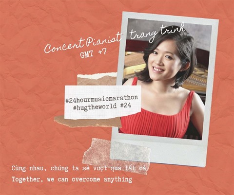 "Alors qu’il nous ait recommandés à rester chez soi et d’appliquer la distanciation physique dans le cadre de la prévention et de la lutte contre la crise sanitaire, on peut recourir à la musique pour se mettre en contact", souligne la pianiste Trang Trinh, conceptrice de l’émission 24-hour music marathon online. Avant d’ajouter qu’à travers les réseaux sociaux ou les émissions télévisées, on peut partager davantage avec les autres, apporter joie et détente. Le programme a aussi pour but d’encourager les gens à rester à la maison.