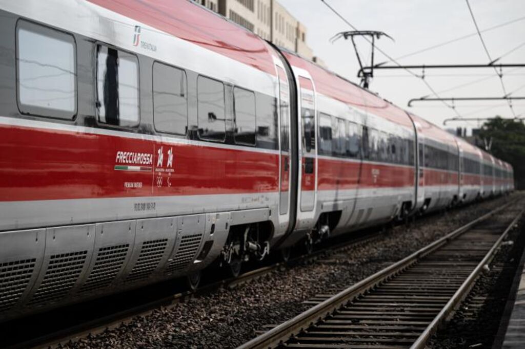 | Un train à grande vitesse Frecciarossa de la Compagnie ferroviaire italienne Trenitalia à son arrivée à la gare de Marseille. |