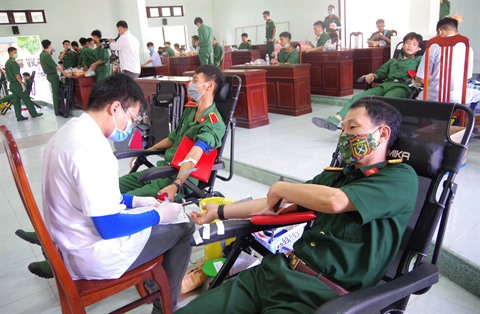 | Les cadres et les soldats de l'armée ont activement répondu au mouvement de don de sang volontaire avec près de 1.000 unités de sang. Photo : VNA/CVN |