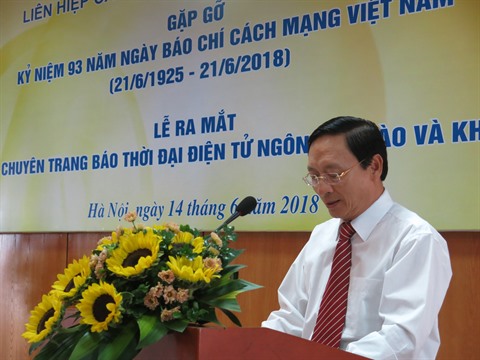 | Le vice-président de la VUFO, Bùi Khac Son, s’exprime lors de la rencontre avec la presse, le 14 juin à Hanoï. |