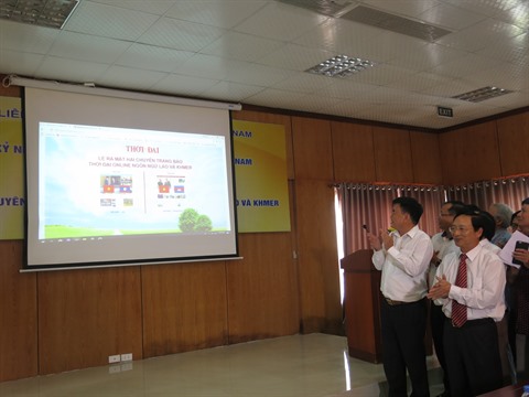 | Cérémonie de lancement des versions laotienne et khmère du journal en ligne Thoi Dai, le 14 juin dans la capitale. |