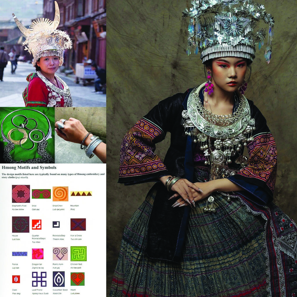 Pour le costume des H’mông Hoa à Lào Cai, les motifs détaillés des jupes et des chemisiers ont été faits à la main sur des tissus datés d’environ 35 ans. Les colliers et bracelets des H’mông de Sa Pa sont considérés comme le point culminant du costume. Les cheveux ont été tressés à partir de vrais cheveux mêlés avec de la laine des H’mông Hoa à Lai Châu.