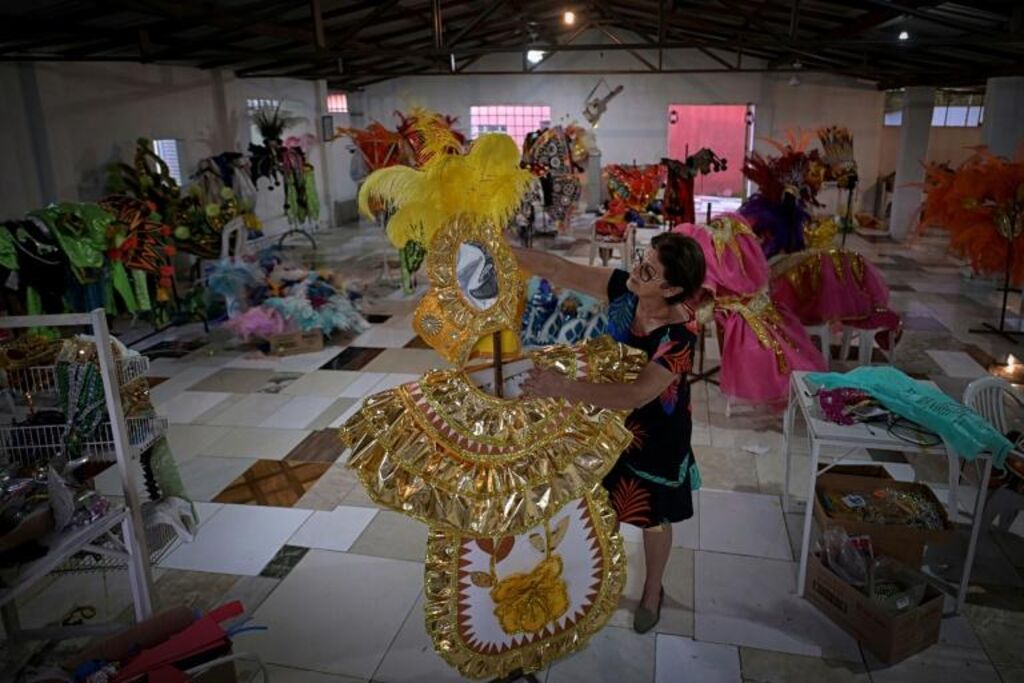 "C'est du luxe !", se félicite Regina Coeli, une professeure d'art de 59 ans. "On prépare tout ça minutieusement et le résultat est sensationnel !", ajoute-t-elle, en essayant un magnifique costume orange et doré à franges assorti à sa couronne.