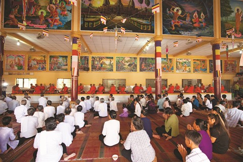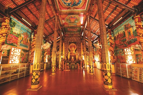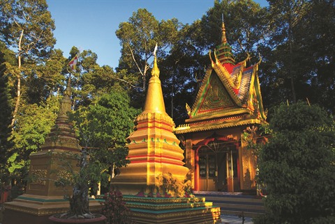 La plupart des Khmers pratiquent le bouddhisme du Petit Véhicule (Hinayana). Les pagodes sont sacrées et très importantes dans leur vie. Il existe dans le Nam Bô (Sud) environ 600 pagodes khmères, grandes ou petites, avec plus de 10.000 moines. Certaines ont été construites il y a plusieurs siècles et sont reconnues comme reliques culturelles et architecturales nationales, telles que les pagodes Âng, Met, Hang et Doi...