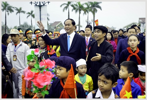 | Le président Trân Dai Quang (centre) participe à la fête "Les couleurs du printemps dans les quatre coins du pays 2017". |