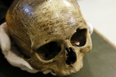 | Le crâne du philosophe français René Descartes de retour au Musée de l’homme au Palais de Chaillot à Paris. |