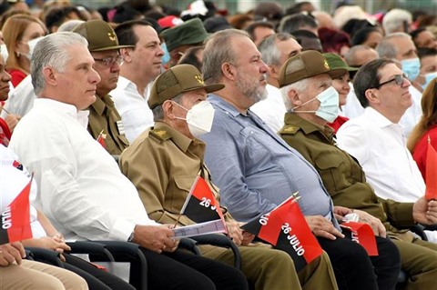 | Les dirigeants de Cuba lors d'une cérémonie de célébration de la Journée nationale de la rébellion, le 26 juillet à La Havane. |