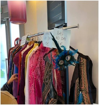 | Les "ao dài", tuniques traditionnelles des Vietnamiennes, mis en vente lors de l’événement. |