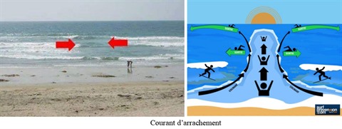 Les courants : Parfois violents, ils vous entraînent vers le large sans même que vous vous en rendiez compte, il vous est impossible de revenir vers la plage, et plus vous vous épuisez, plus grand est le risque de noyade.