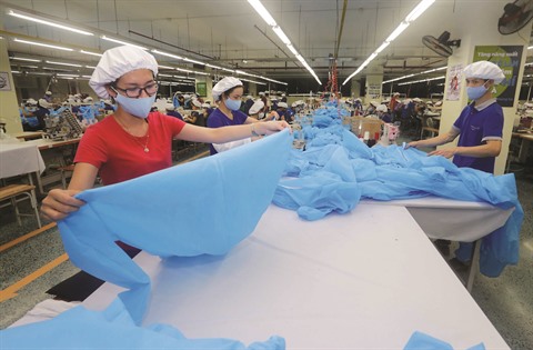 | Dans une usine d’uniformes de protection sanitaire de la compagnie TNG basée à Thai Nguyên (Nord). |