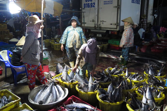 | Les pêcheurs de Khánh Hòa (Centre) sont réputés pour l’exploitation du thon, en particulier du thon océanique. |