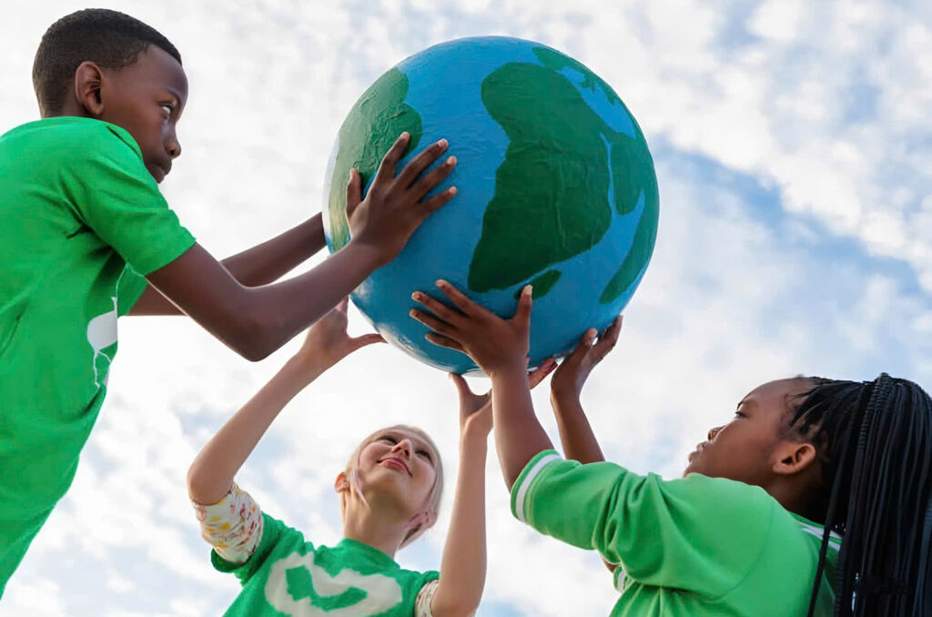 | Les enfants travaillent ensemble pour préserver le monde vert. |