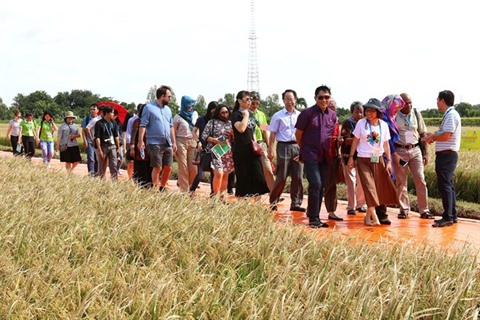 | Les délégués visitent l’Institut de riz du delta du Mékong, lors de la Semaine de la sécurité alimentaire à Cân Tho. |