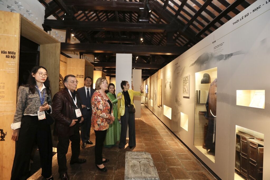 Au Temple de la Littérature, les délégués ont également eu l’occasion de découvrir deux expositions sur ce patrimoine vietnamien organisées par le Centre d'activités culturelles et scientifiques de Van Miêu - Quôc Tu Giam, en collaboration avec un groupe d'experts français et l’École française d'Extrême-Orient.