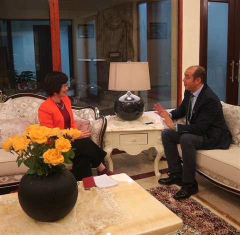 | Le vice-président de la Chambre des représentants du Maroc, Mohammed Ouzzine, s'adresse à la journaliste du Courrier du Vietnam. |