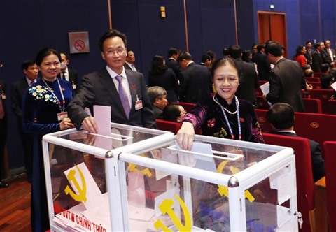 | Les délégués votent pour les membres du Comité central du Parti du XIIIe mandat. Photo : VNA/CVN |